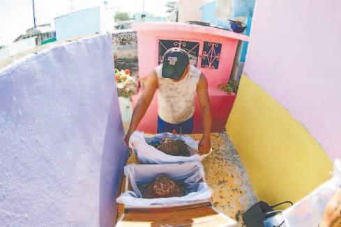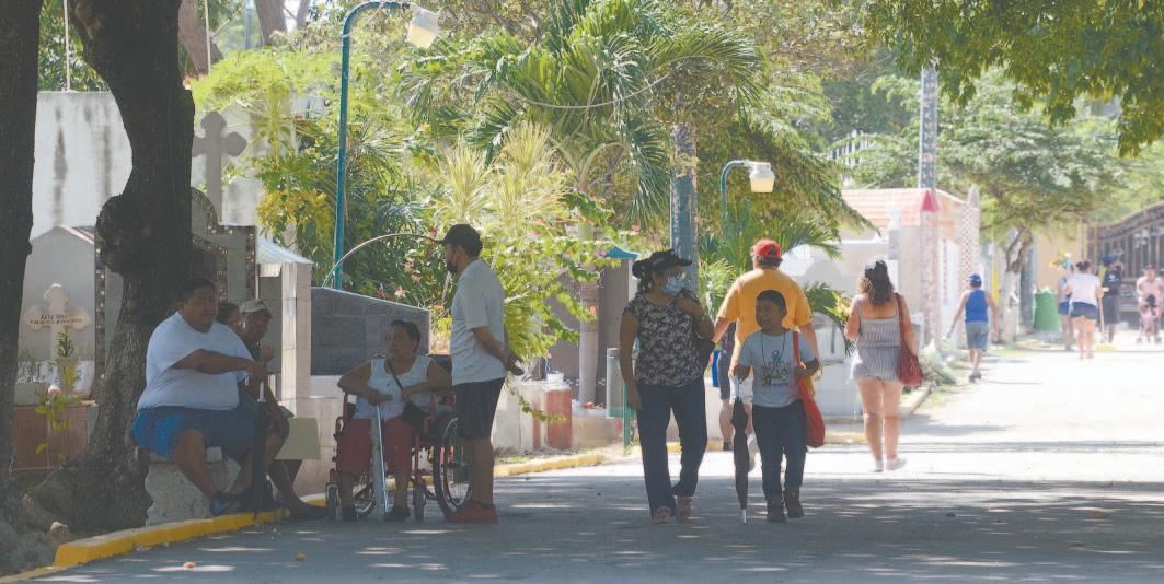 birnos aquí en su casita”, expresó. Al caer la tarde, el cementerio de la ciudad de Cancún lucía con más color por las fl ores que las familias les dejaron a sus difuntos, en un intento por conectar nuevamente con ellos durante estas fechas.