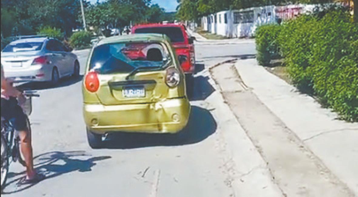 La unidad de alquiler, tras ser impactada por alcance, salió de la vía de circulación, quedando volcada en una zona de maleza, lugar donde recibió los primeros