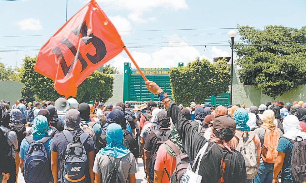 DESPUÉS de un mitin que encabezaron padres de los 43 estudiantes desaparecidos en el 2014, encapuchados lanzaron artefactos de fabricación casera contra las instalaciones del Ejército.- (Agencias)