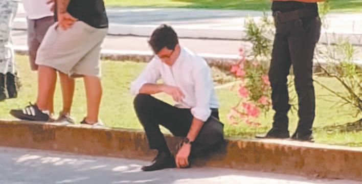 El hombre vierte sobre sus cabezas un cubo con una sustancia que parece ser yogur y a continuación es confrontado por el comerciante.