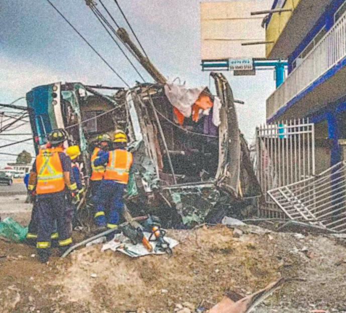 un camión de pasajeros que impactaron lo que causó que ambos salieran del camino y, en el caso de esta segunda, posteriormente impactó contra la fachada de un edificio.