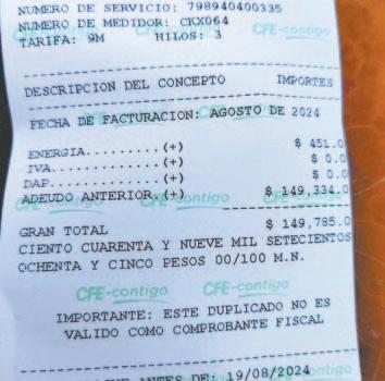 LA Comisión de Electricidad impuso facturas de hasta 200 mil pesos a los campesinos de La Candelaria, arriesgando su actividad productiva.- (L. Kauil)