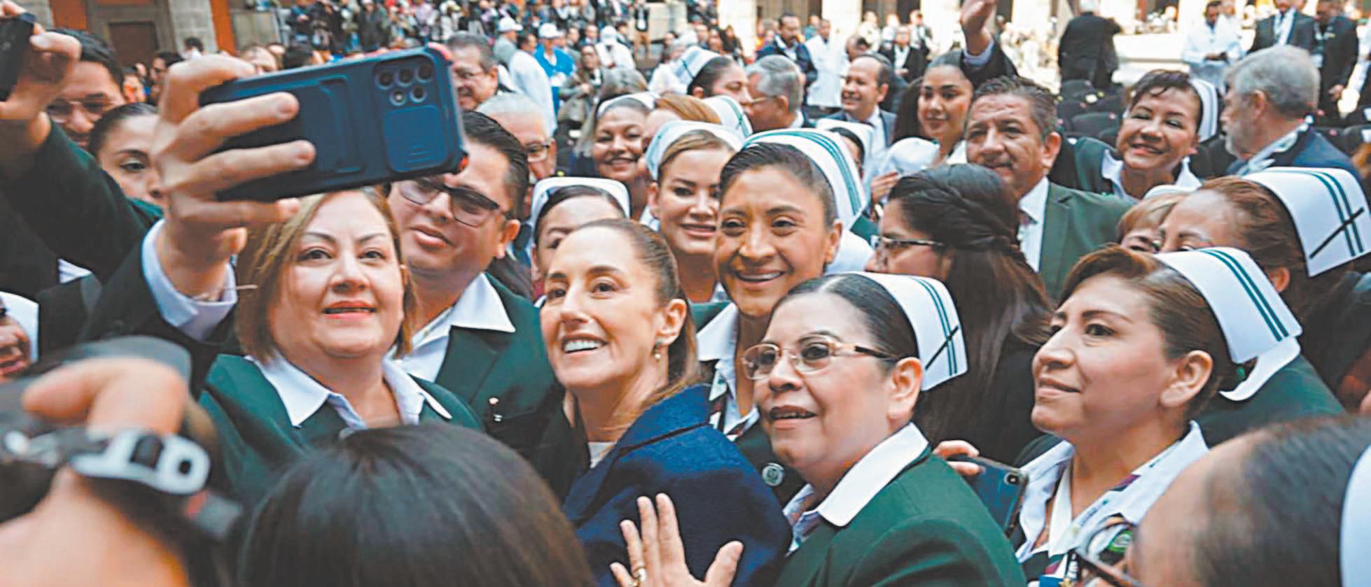 áreas, la primera es el fortalecimiento de la Seguridad Social y de los derechos de los trabajadores y trabajadores de México, continuar con el incremento a los salarios mínimos, y a los salarios y a la fortaleza de los derechos de los trabajadores”, destacó la Mandataria federal. Durante su mensaje, la Jefa del Ejecutivo federal reconoció de manera muy especial a todas las mujeres trabajadoras del IMSS, quienes, resaltó, además de atender a las y los derechohabientes también laboran en sus hogares para fortalecer a sus familias.