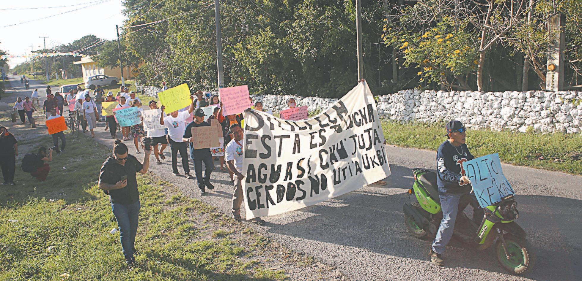 Con un nudo en la garganta, pero con paso firme, el colectivo La Esperanza de Sitilpech marchó hasta las puertas de la granja Kancabchén II de Kekén, reabierta por orden de Jorge Enrique Edén Winter, juez del Tribunal Colegiado, anunciando que tomarán medidas drásticas para hacer valer el derecho a una vida libre de enfermedades y afectación a sus cultivos por la contaminación del agua.
