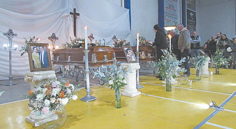 La cancha de basquetbol se transformó en altar donde los féretros fueron colocados entre flores y fotografías de las tres jóvenes; a su lado, un espacio vacío para el cajón de José Melesio, el novio de Daniela que vino de los Estados Unidos a pasar las fiestas con ella y también fue asesinado, pero cuyo cuerpo aún no era entregado por las autoridades de Zacatecas.