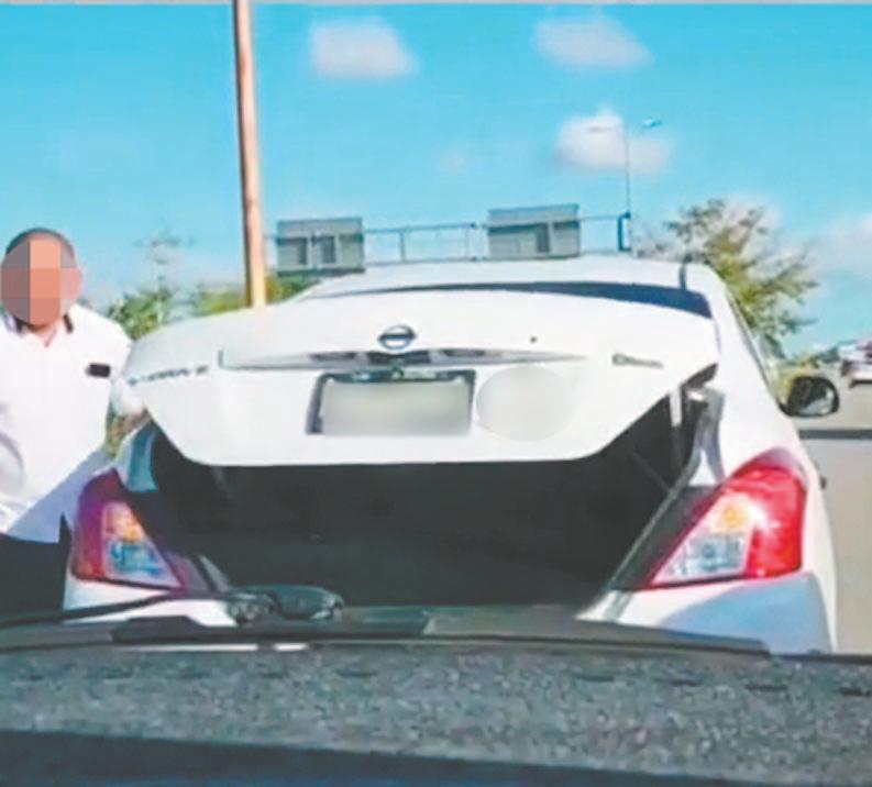 Mientras ambos guiadores esperaban la llegada de las autoridades, un automovilista, quien se identifi có como Joel P.C., y se desplazaba en un Volkswagen línea Jetta no se percató de los bloques tirados en la carpeta de rodamiento, chocó contra ellos y dos neumáticos delanteros del coche explotaron, el radiador del automotor se dañó y el motor inmediatamente se apagó y quedó en medio de la carretera.