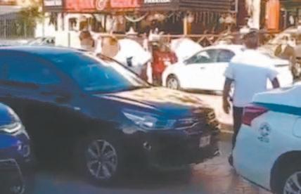 El periodista, vestido con una playera blanca y pantalón gris, cayó herido sobre la acera, estaba acompañado de otra persona, quien de inmediato lo atiendió.