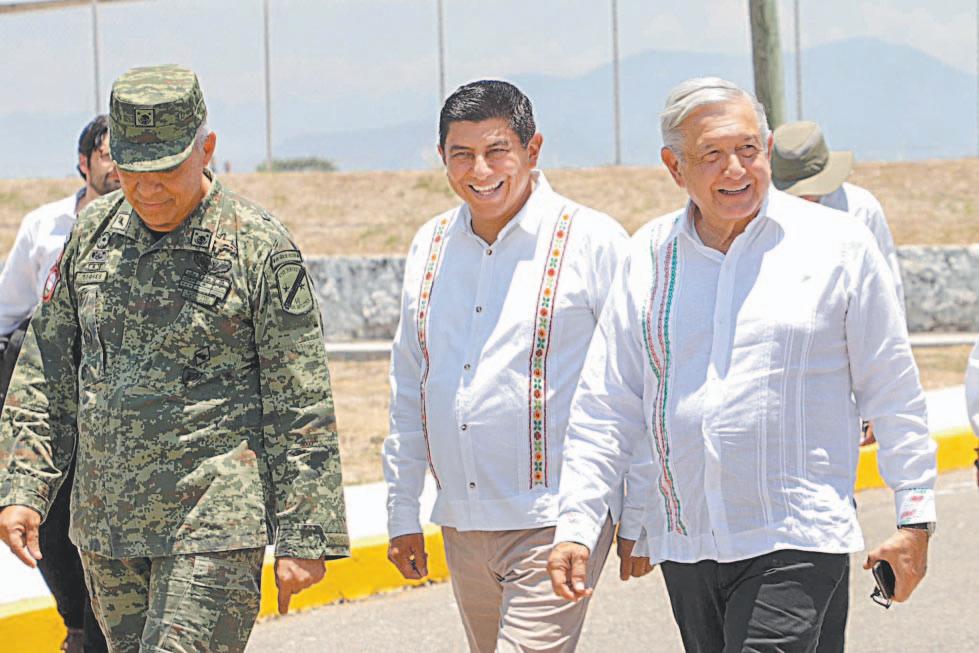 Acompañado del gobernador de Oaxaca, Salomón Jara y el de Chiapas, Rutilio Escandón, la mañana de este sábado, a bordo de un helicóptero de la Marina Armada de México, el Presidente de México supervisó los avances de la lí-