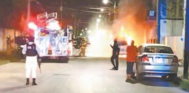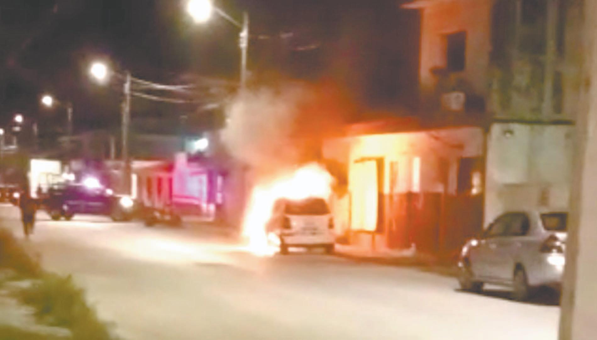 Un auto repartidor fue objeto de un ataque de desconocidos, quienes lo quemaron con un artefacto hechizo afuera de nuestras o fi cinas que se ubican en pleno corazón de Cozumel