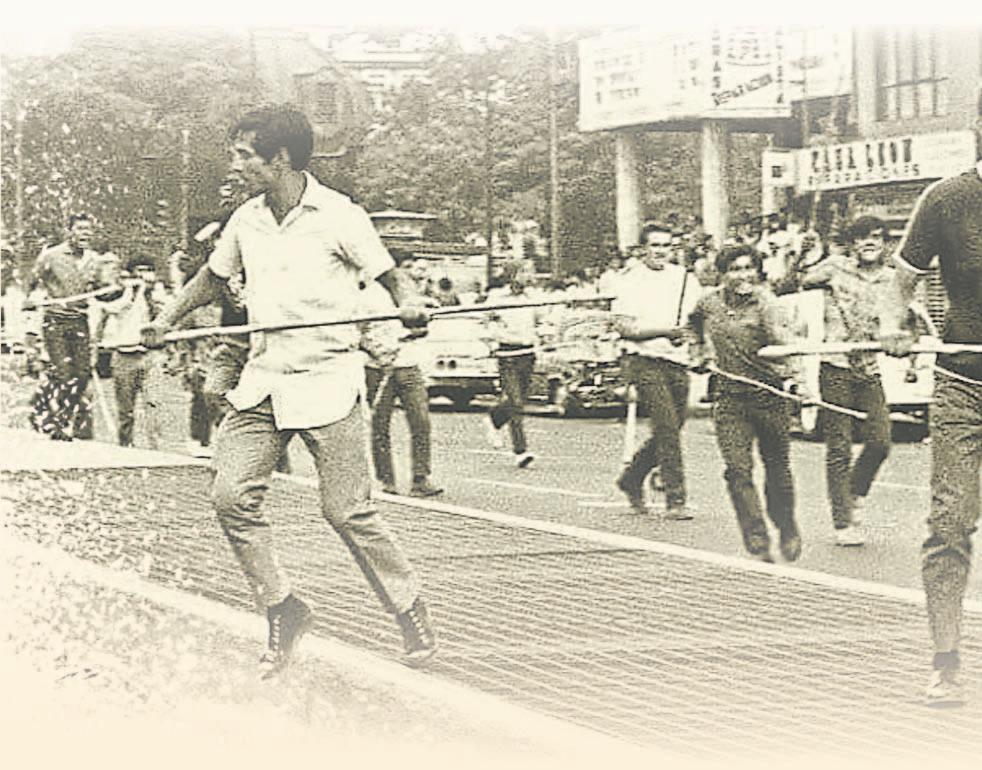 Los Halcones estaban armados con varas de bambú, palos de kendo y porras, por lo que en un principio fueron repelidos por los estudiantes. En un contraataque, los paramilitares agredieron a los manifestantes una vez más, pero esta vez, no sólo con garrotes; sino con armas de fuego de alto calibre. Los heridos fueron llevados al