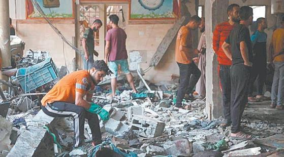 EL centro educativo en el barrio Al-Daraj, de la Ciudad de Gaza, que fue blanco de los aviones de guerra de Israel, servía como refugio para personas desplazadas.- (POR ESTO!)