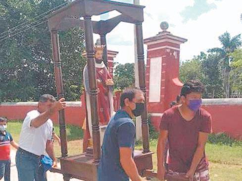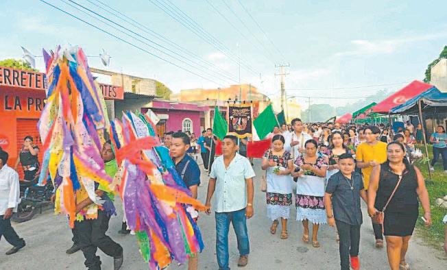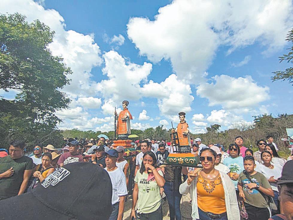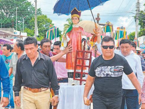 Pasean 500 pobladores de Yobaín a San Lorenzo Mártir, patrono de la comunidad