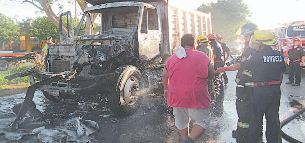 En cuestión de segundos toda la cabina quedó envuelta en llamas, así que optó por solicitar auxilio, a través de los números de emergencia. Algunos habitantes del rumbo apoyaron al chofer para tratar de controlar