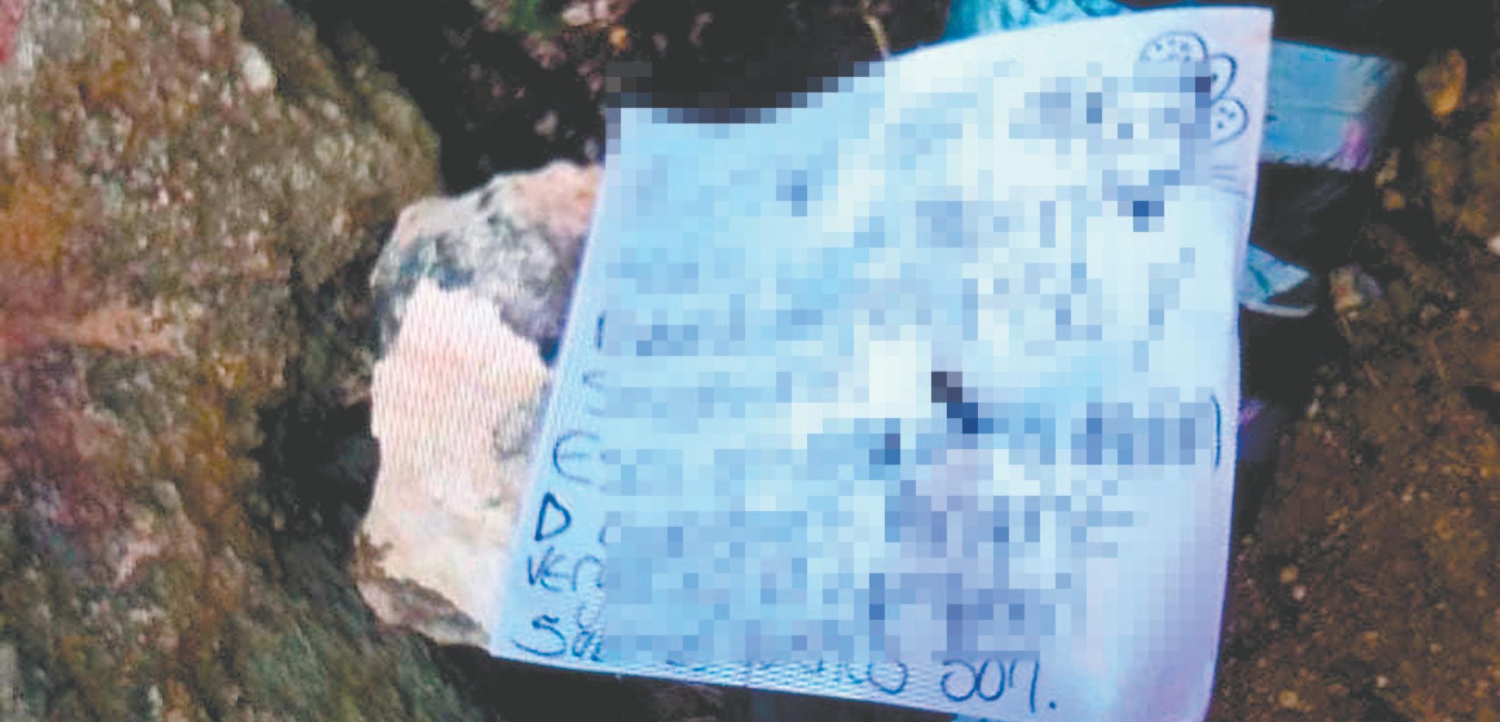 da, se encontraba un bulto envuelto en bolsas negras, con una cartulina.