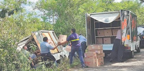 La unidad quedó con la cabina dentro de la maleza fuera de la vía de rodamiento y la caja obstruía la carretera. Acudieron agentes municipales de Chemax, delimitaron el área y dirigieron el tránsito de los vehículos en una parte de uno de los carriles que quedó libre.