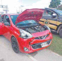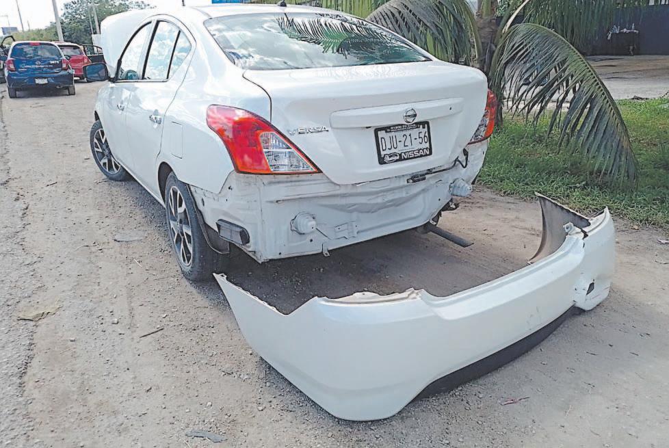 De acuerdo con datos obtenidos en el sitio, el guiador de un Nissan March , placas de circulación NYV-23-85, del Estado de México, no se percató de los automotores detenidos y le pegó por alcance a un auto de la misma marca pero tipo Versa , matrícula DJU-21-56, de Campeche. El conductor del March se bajó de su vehículo para hablar con el afectado, a cuyo coche se le desprendió la defensa trasera, al auto que lo impactó, además de la fascia se le dañó el radiador.