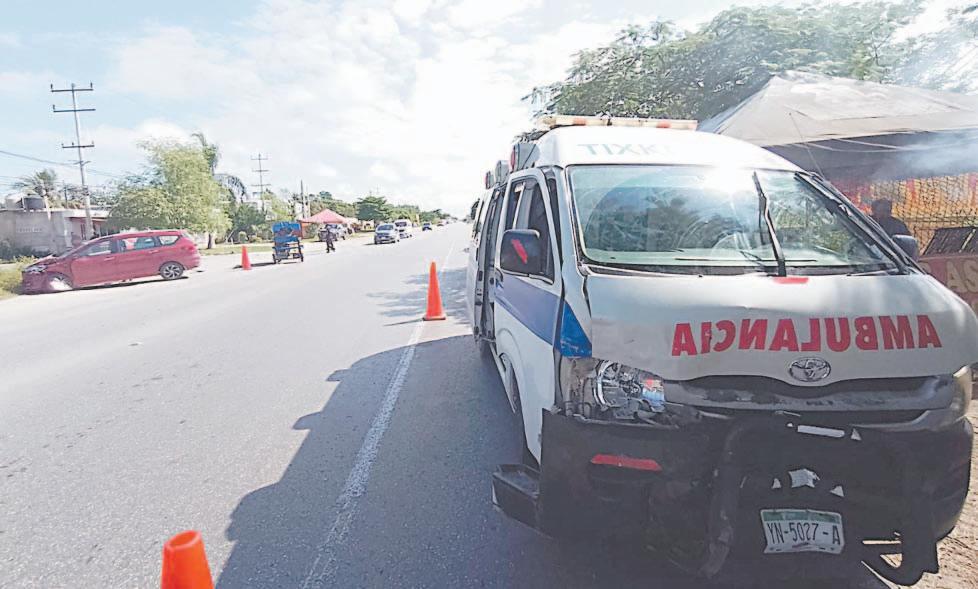(Ernesto Pinzón)El traslado de una persona enferma del municipio de Tixkokob a un hospital de Mérida fue interrumpido momentáneamente, porque la ambulancia en la que viajaba fue colisionada en el kilómetro tres de la carretera de ese municipio a la capital.