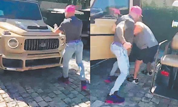 Un hombre fornido encaró a otro de complexión gruesa al que acusaba de ladrón. En la grabación, que es tomada por una mujer, se observa el momento en el que llega el hombre musculoso se acerca a una camioneta dorada