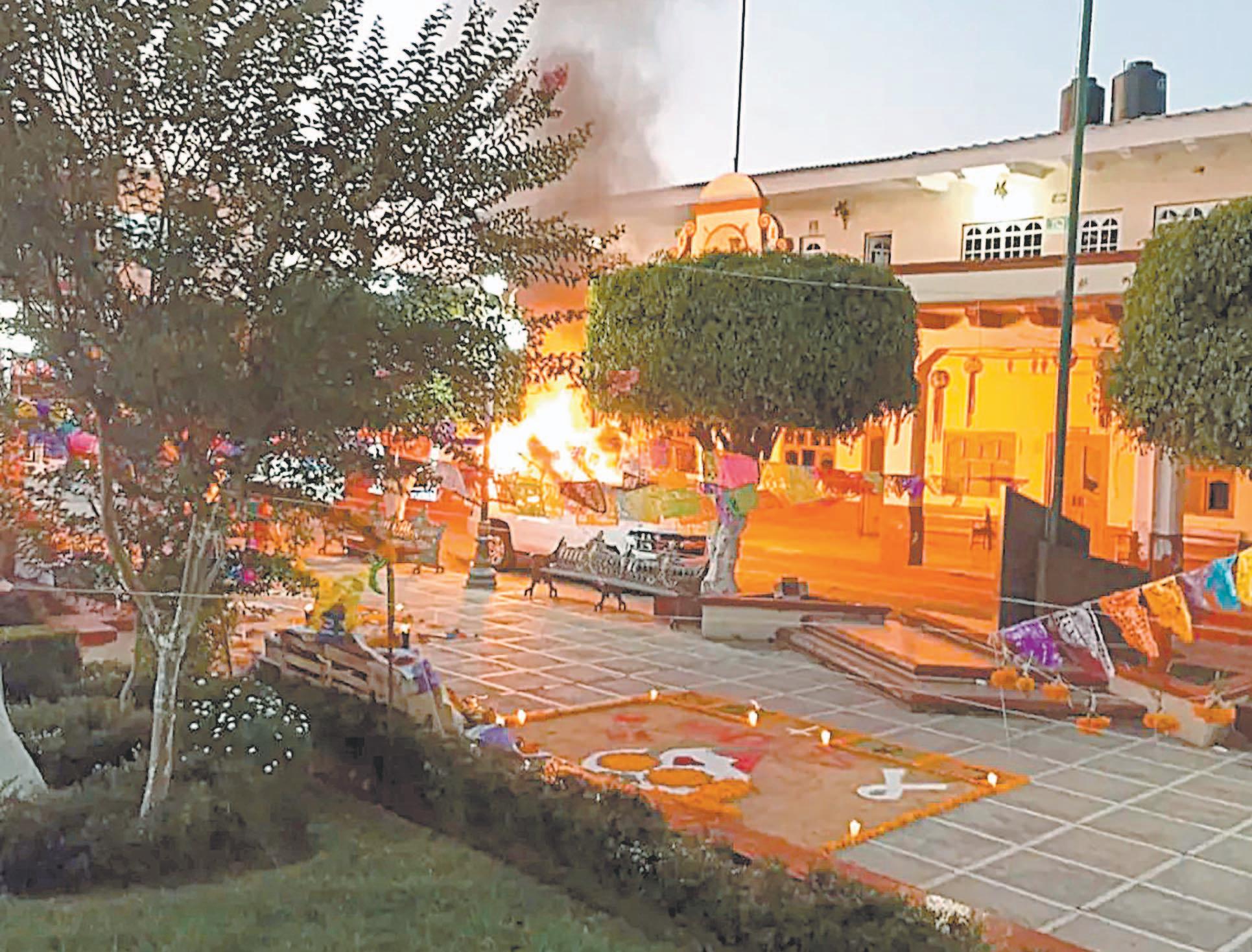 CIUDAD DE MÉXICO.- Habitantes del municipio de Chilchota, en Michoacán, vandalizaron el Palacio Municipal e incendiaron vehículos oficiales, debido a una queja por la falta en el servicio del suministro de agua potable.