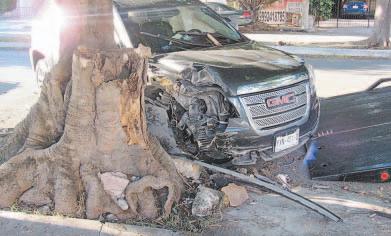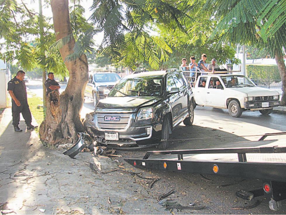 Una camioneta GMC Terrain se impactó contra un árbol de fl amboyán en la calle 40 entre 23 y 25 del fraccionamiento Residencial Pinos , en el Norte de Mérida, al parecer, tras dormitarse, la mañana de ayer.