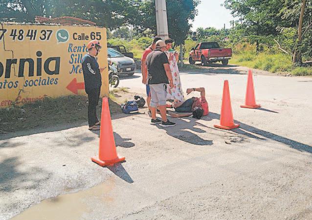 en ese momento en una tienda de conveniencia, se acercaron para ayudarlo, pero éste les dijo que estaba bien. Acudieron paramédicos y agentes de la Secretaría de Seguridad Pública (SSP), pero no fue necesaria la intervención de los primeros. Los oficiales señalizaron el sitio para evitar otro percance, recabaron datos para su respectivo reporte.