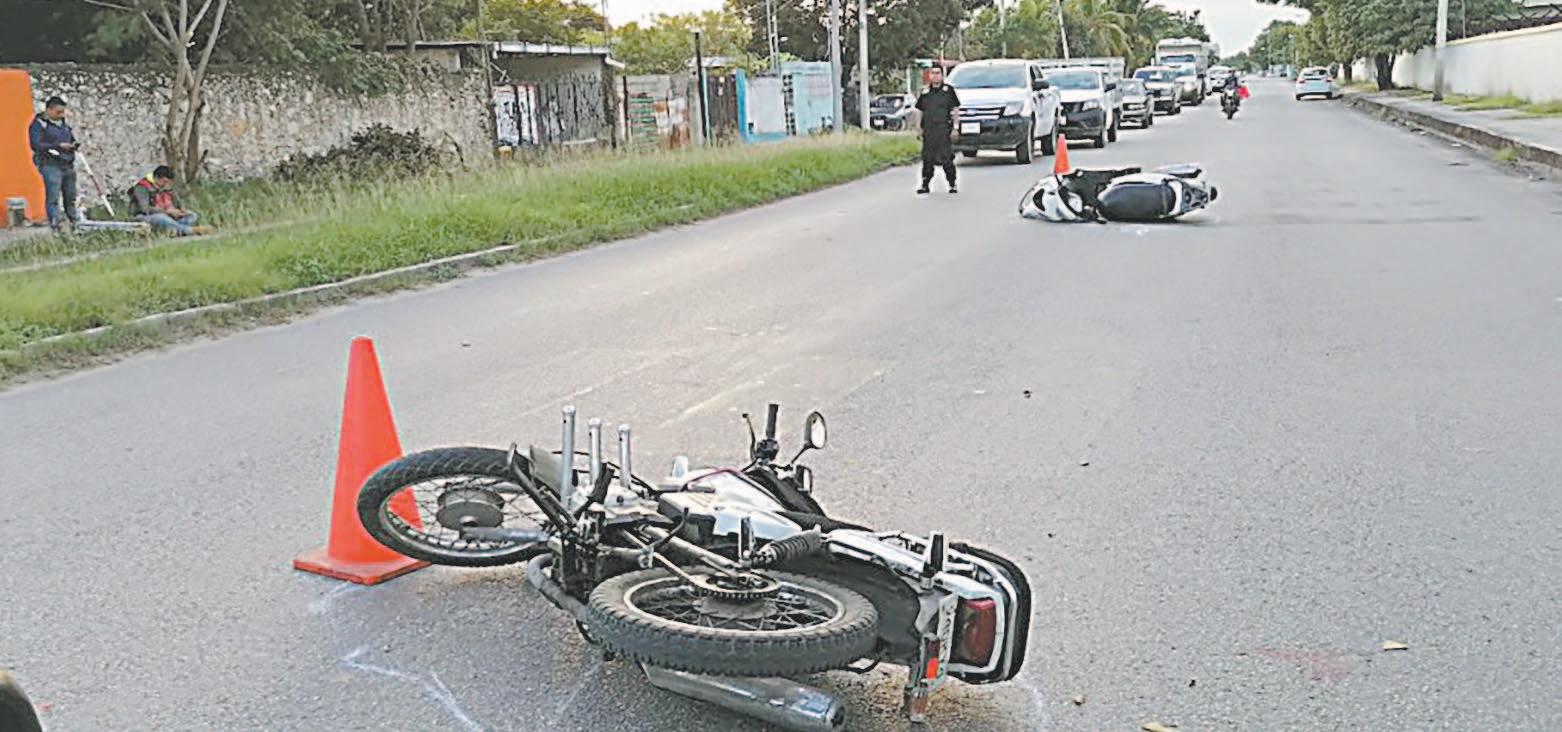 La colisión de un par de motociclistas dejó dos personas lesionadas en el cruzamiento de las calles 8 y 39 de la colonia Mayapán , en el Oriente de Mérida.