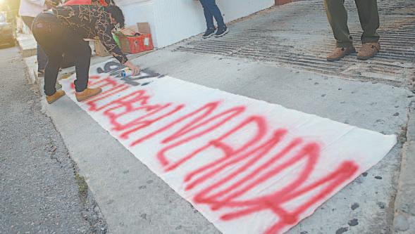 Los manifestantes exigían la presencia del Alcalde para que firmara un documento en el que se compro-