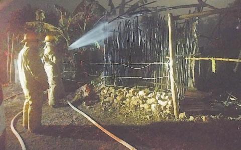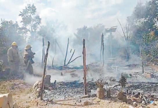 Los vecinos, con cubetas en mano, intentaron apagar la humilde vivienda construida con bajareques y láminas de cartón que ardió en cuestión de minutos. Arribaron agentes en patrullas de la Policía Estatal y Municipal, junto con bomberos, quienes controlaron las llamas.