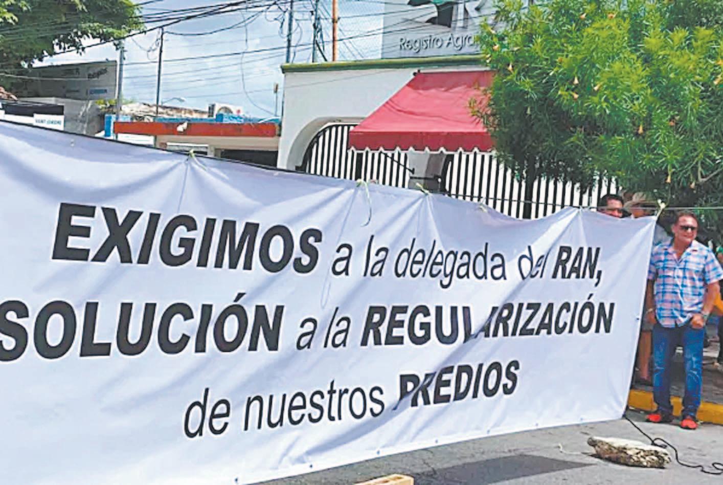 AVECINDADOS de la comisaría meridana se manifestaron frente a la delegación del Registro Agrario Nacional, que desde hace siete años demora la regularización de sus terrenos.- (POR ESTO!)