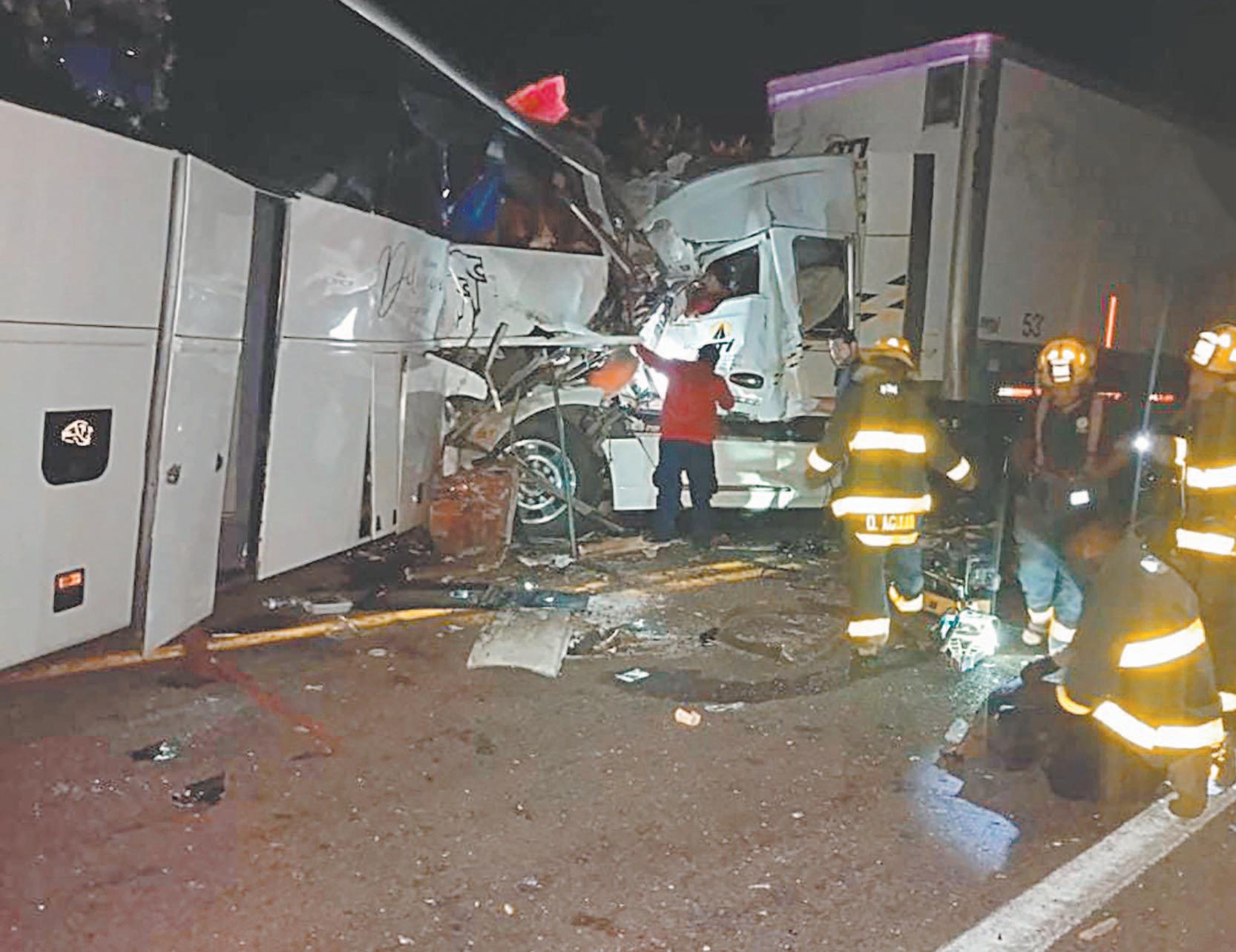 Choque entre autobús, tráiler y camión de carga deja cinco muertos