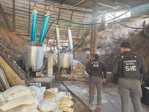 Ejército Mexicano y de la FGR. En el establecimiento fueron encontrados 38 tambos, tres garrafones y diversos aditamentos donde almacenaban las sustancias químicas, además de que se incautaron