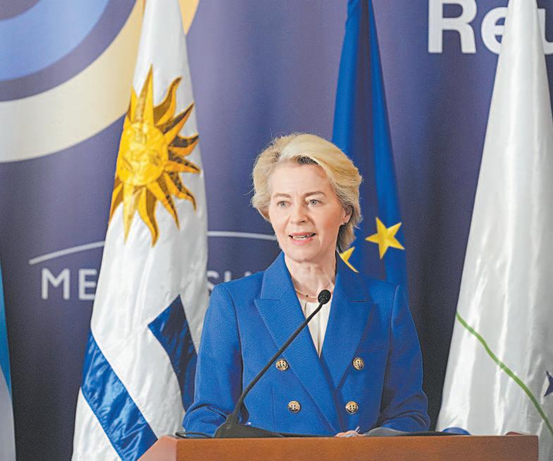 Von der Leyen se encuentra en Montevideo para acompañar la cumbre de los líderes del Mercosur que se inició ayer. “Este acuerdo no es sólo una oportunidad económica, es una necesidad política”, agregó.