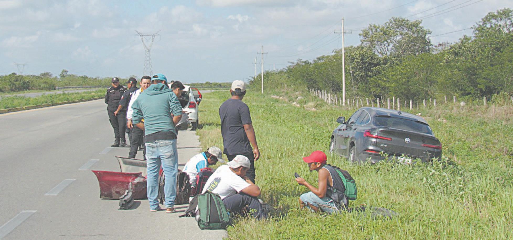 Paramedicos de la Policía Municipal de Conkal y de la SSP atendieron a los lesionados, quienes no sufrieron heridas de gravedad. Agentes municipales tomaron datos del hecho, pero como la carretera es federal, esperaron a los elementos de la Guardia Nacional.
