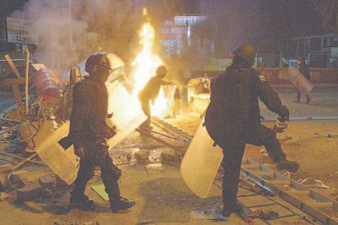 Los extranjeros empezaron a protestar y aglomerarse en la ventanilla de pago, lo que provocó que, entre los jaloneos, uno de los migrantes cayera al piso desmayado.