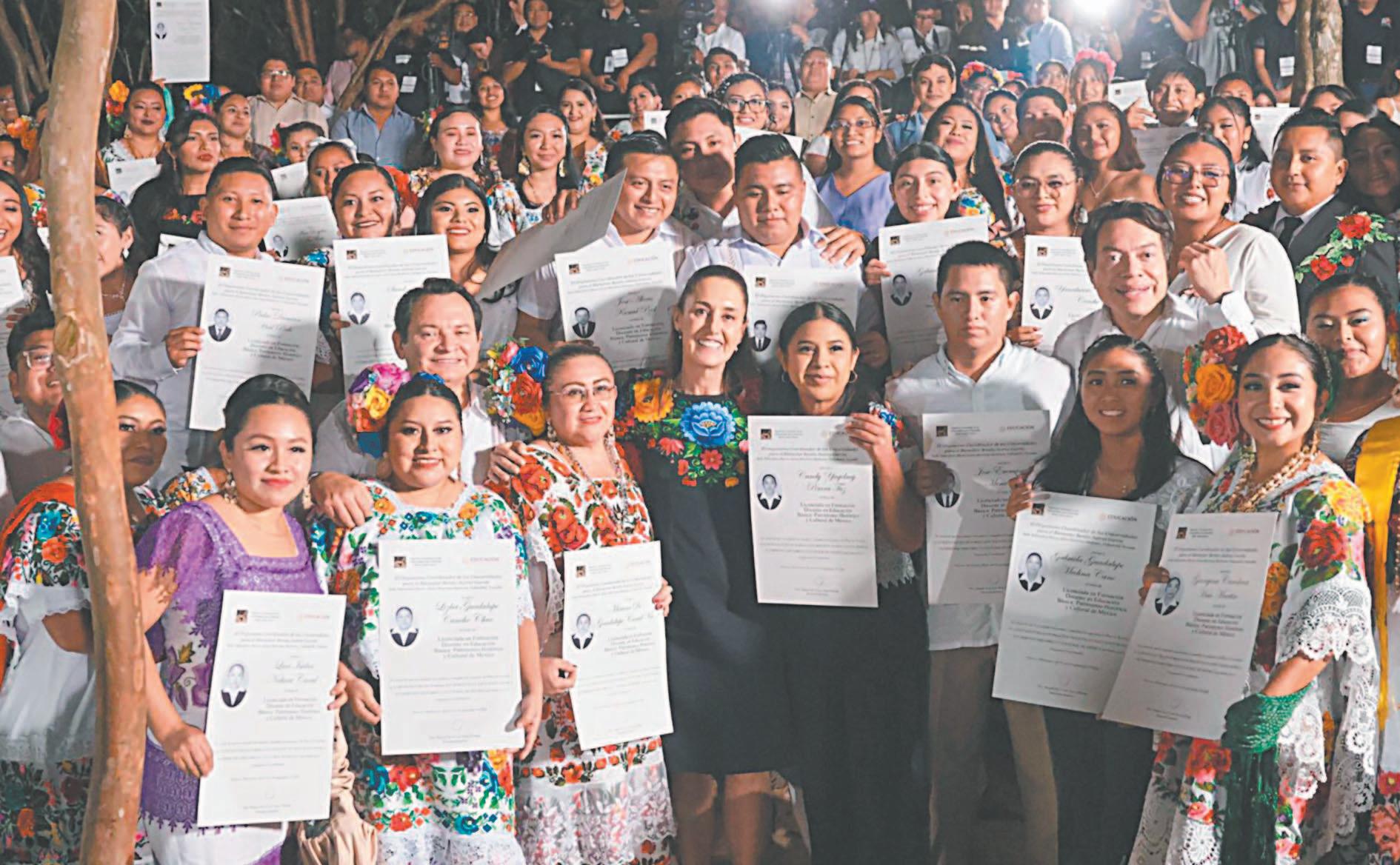 EN su segunda visita a Yucatán desde que asumió el cargo, la Presidenta destacó que las Universidades para el Bienestar Benito Juárez García, que cuentan con una matrícula de 85 mil alumnos en todo México, son de las mejores instituciones de nivel superior del país, gracias a que tienen una visión humanista, científica y de colectividad. Previo a la ceremonia de fin de cursos en la Sultana de Oriente, recorrió, en compañía de Joaquín Díaz Mena, la zona arqueológica de Chichén Itzá.- (POR ESTO!)