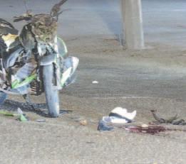 Según la versión del chofer de un Freightliner, numeral YN-1518-A, que permaneció en el sitio, se detuvo para auxiliar al motociclista, ya que el conductor de otro vehículo que lo chocó se dio a la fuga.