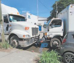 El operador de un camión Hyundai no respetó la señal de alto de disco y colisionó tres vehículos, entre ellos un tráiler en el cruce de las calles 19 y 24 de la colonia Ciudad Industrial ayer al mediodía.