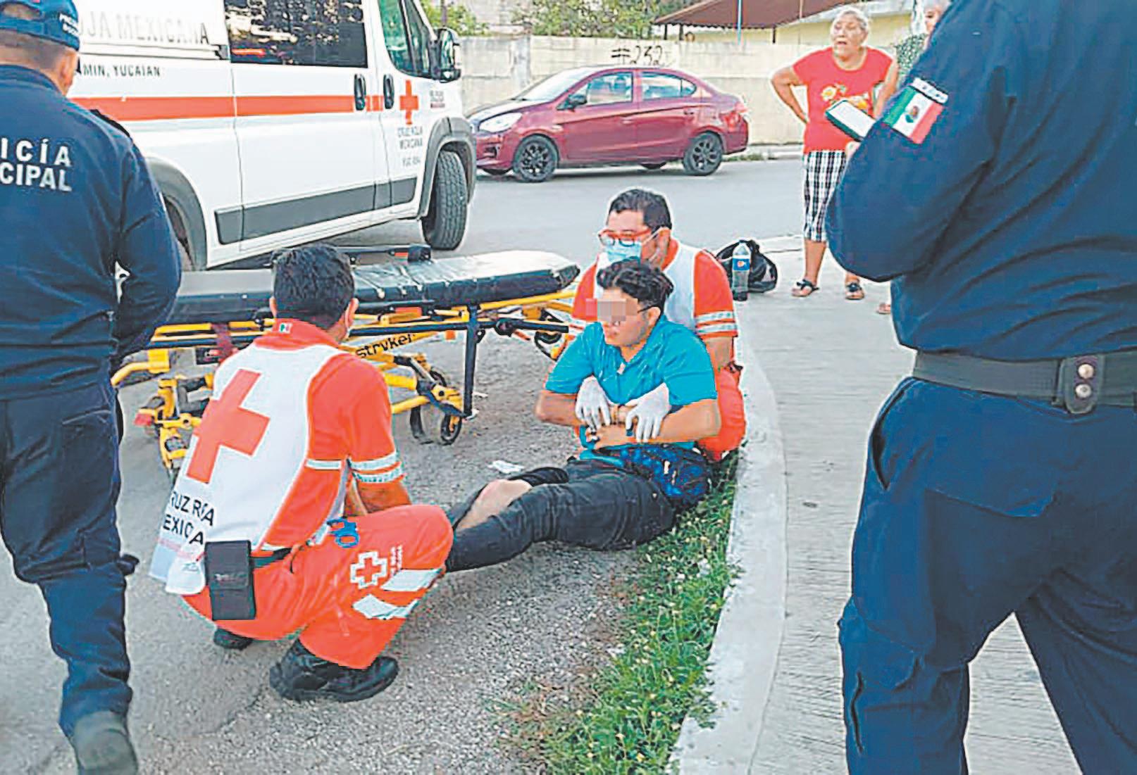 Un joven motociclista resultó lesionado al ser impactado en su costado cuando intentó rebasar a un automóvil en la avenida Itzaes con calle 65 del centro de la ciudad.