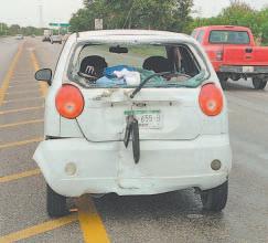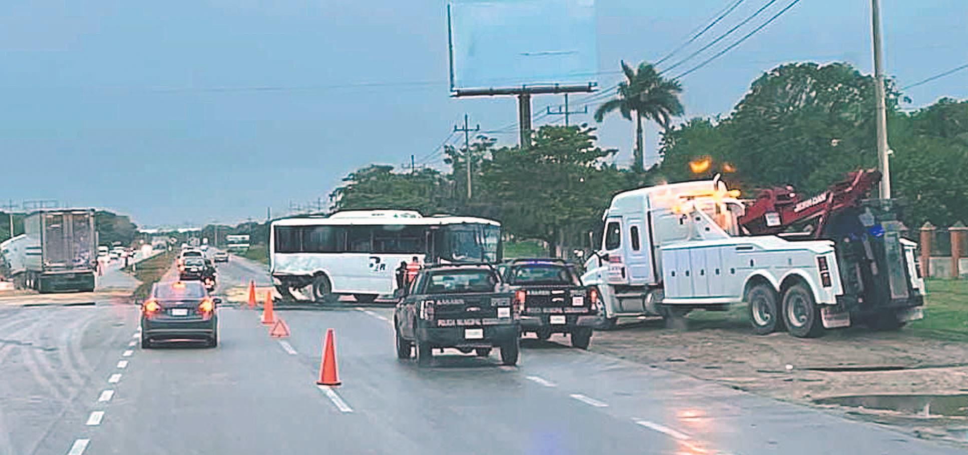 Sin embargo, en el kilómetro 37, después de bajar el paso a desnivel por la entrada al fraccionamiento Francisco de Montejo le pegó por alcance a una vagoneta Nissan, matrícula YXY-102-E.