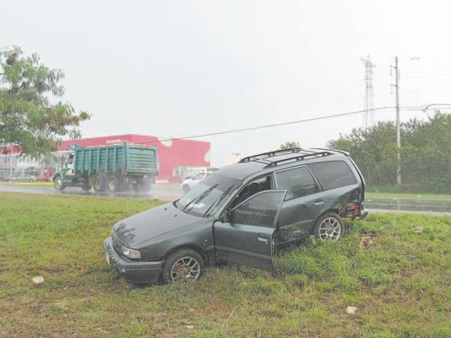 El guiador de la vagoneta perdió el control del volante, el vehículo giró, avanzó unos metros sobre el piso mojado y se fue a la hondonada del camellón, donde quedó en sentido opuesto al que circulaba.