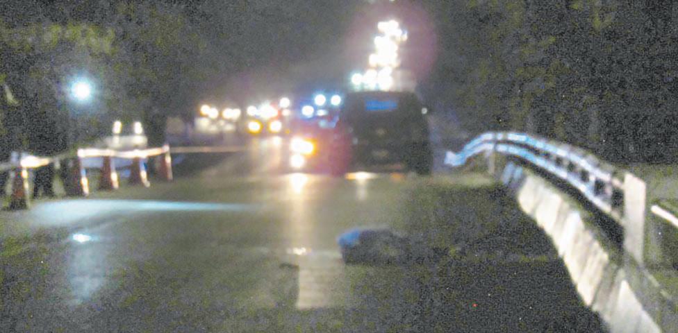 Los peritos ministeriales recorrieron el puente, en busca de pistas, para ubicar al automotor que atropelló al hombre. Algunas personas, que esperaban su ca-