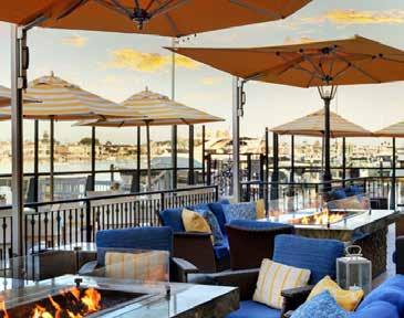 What better way to top off a sunset boat cruise than enjoying bayside bites under the bistro lights and al fresco dining at its finest with modern-design fire pits and comfy couches? The celebrated onsite signature A+O restaurant/bar, Anchors & Oceans, is the answer. As the sun dips down, the spirits ramp up with live music, creative craft cocktails, and themed menu offerings: Taco & Tequila Tuesdays, Western Wednesdays, and Sushi & Sake Saturdays are clever culinary offerings. The rap around decking gives optimal viewing for sun settings and boat watching; the blue and white color palette is accentuated with umbrellas in a bright yellow. If the weather dips down to the lower 60s (Newport Beach has an average year-round temperature between 65 and 75), the staff will turn on one of the several outdoor patio heaters. California casual in design and cuisine, headed by 17-year-veteran Executive Chef Prabeen Prathapan, the A+O is a favorite scene for locals and guests. Sundays are reserved for the best brunch in town, held weekly in the waterfront Lighthouse room for a succulent seafood spread, made-to-order omelet station, charcuterie, and patisserie galore.