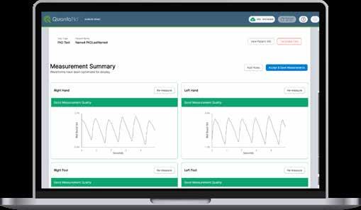 QuantaFlo PAD is an FDA-cleared, non-invasive diagnostic technology that detects early flow volume changes in the upper and lower extremities. This method is more sensitive and can detect PAD even in asymptomatic patients, which is an important capability of the test. Unlike cuff-based ABI testing methods, QuantaFlo is not affected by arterial calcification, which can sometimes lead to inaccurate results in traditional tests.