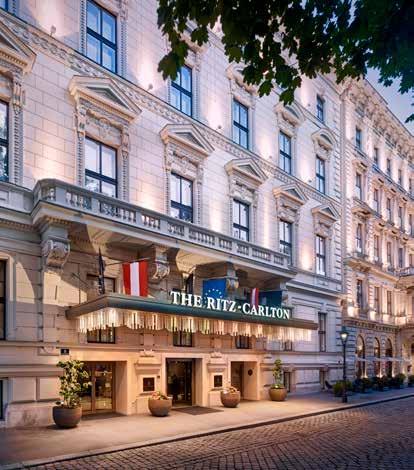 The mid-to-late 19th century witnessed vigorous construction activity. On the Ring, architects made their mark, and “Ringstrassen architecture” was born. The Gutmann Family, the ragsto-riches story of coal merchants, whose influence and money built the Palais Gutmann in 1871, in hopes of being part of the royal society. Four palaces, primarily used by the Viennese nobility and bourgeoisie, were formally independent buildings that were creatively merged into a single structure, creating The Ritz-Carlton, Vienna. An original neoclassical marble staircase runs through the center of the building, original woodcarvings, and a Presidential Suite featuring an original frescoed ceiling and chandeliers, all Palais relics that underscore the period’s significance. The Ritz-Carlton, Vienna, a historical hideaway in
