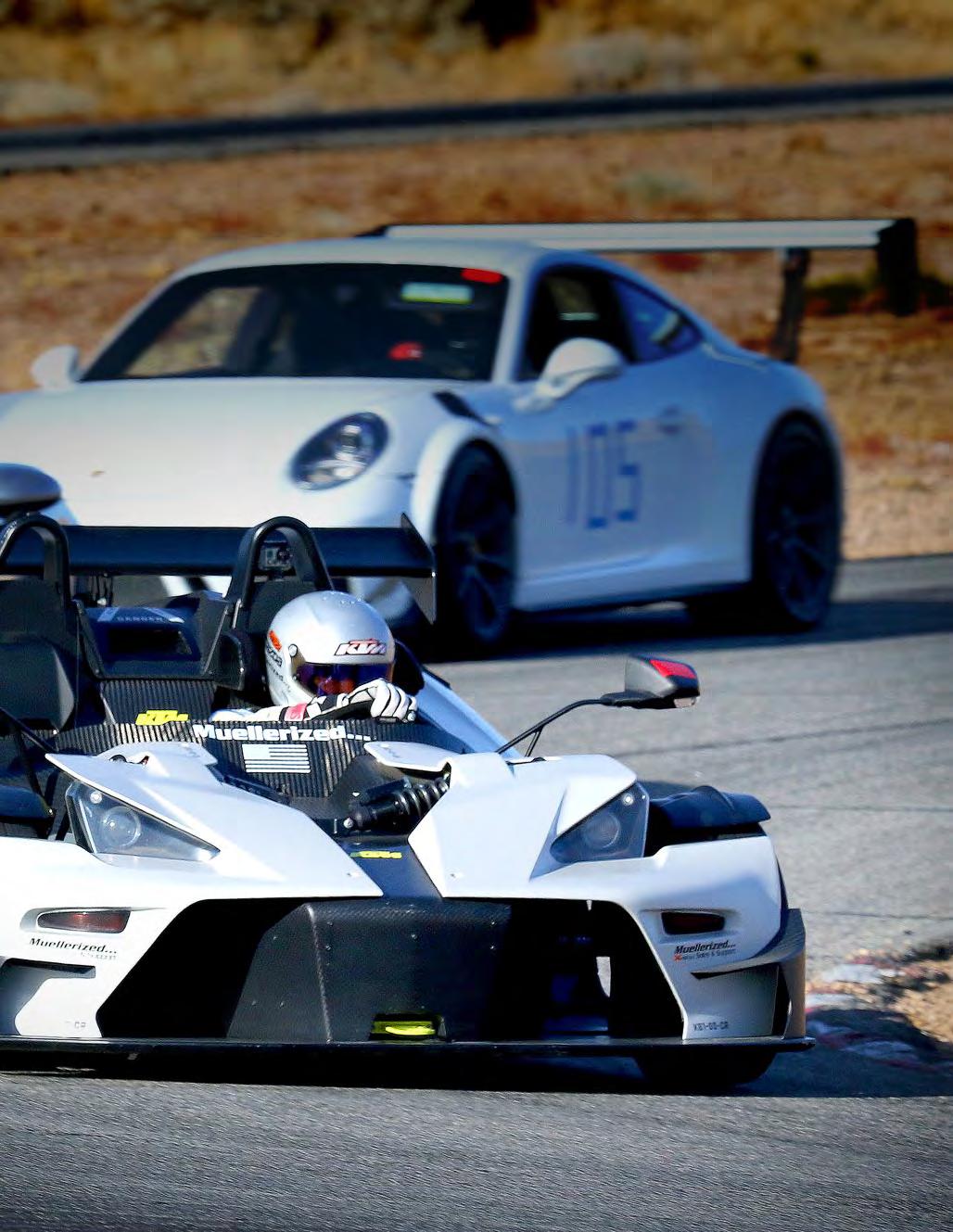 faces to the club, and several new cars. Michael Oest set a track record for the Modified 5 class, and captured the top time of day in the afternoon autocross session driving a Miata MX-5. John Mueller had the fastest time in the time trial group in an open cockpit, sub-2000 pound KTM Crossbow on street tires, and was taking passengers on joy rides for anyone showing an interest in these “go-karts on steroids.” But it was Alexandra Hainer who put together the quickest lap of the day on Sunday going counterclockwise, capturing a track record for GT2 in the process. Speaking of Hainers, Anders Hainer also set the Boxter Spec track record that day of 1:24.299 in the counter clockwise direction. A track record was also set in Stock 6 by Kylie Chang.
