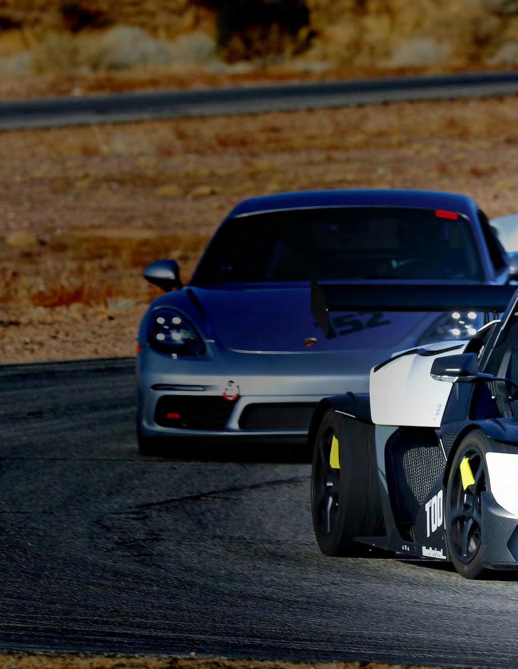 reason. Long enough straight-aways to break into the triple digits of speed, elevation changes, an impressively banked turn, and the ability to run in both directions gives this track just enough playfulness and variation to amuse first time track goers and seasoned professionals alike. Going clockwise there is the WaterFall and an off-camber turn one to test your nerves and skills. Counter-clockwise the track is more forgiving, and the skid pad gives you a chance to experiment with safely going beyond the limits of threshold braking.
