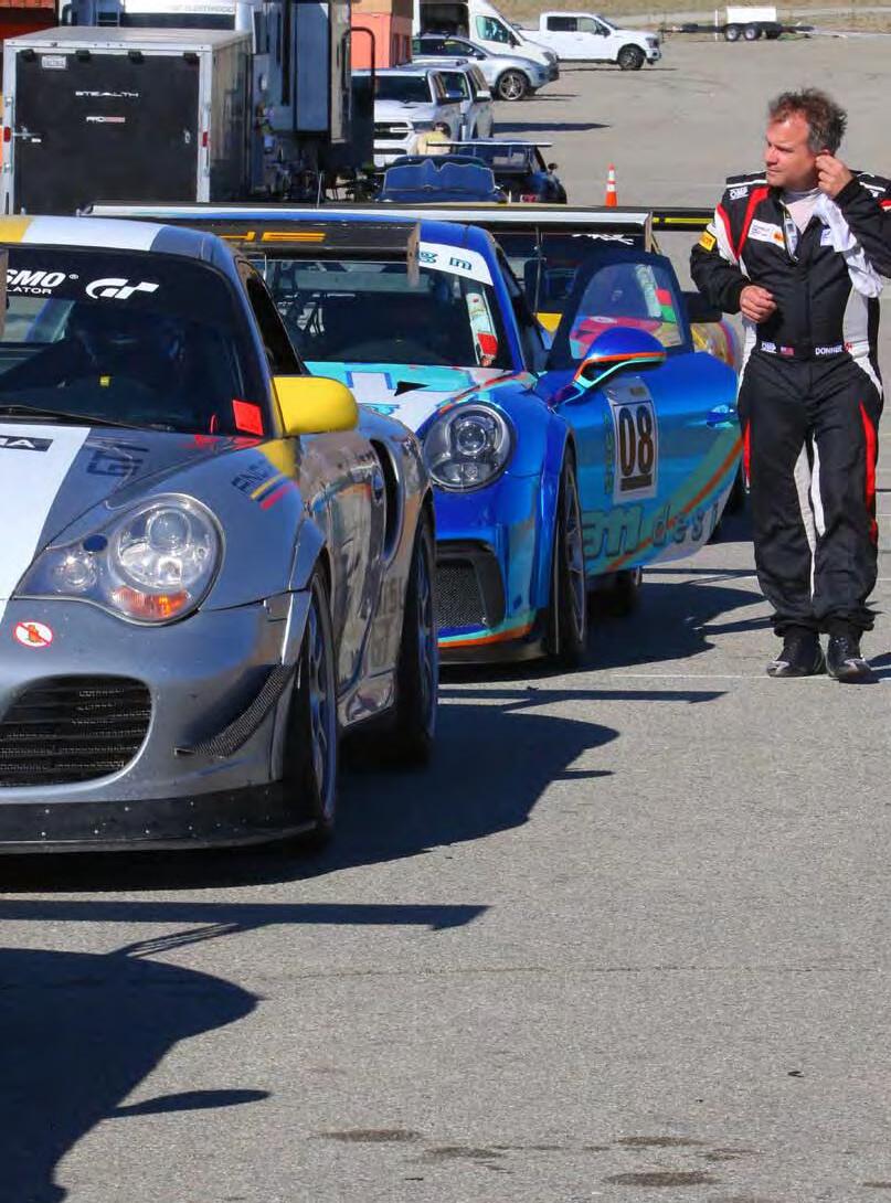 ...but every cloud has a silver lining, and in this case the PDS group was the beneficiary, receiving one extra driving session to fill up the “timer-less time” (paradox?). I noticed a few changes to the line-up including: Nigel Maidment’s car now sports the coveted number “1” as a reward for racking up the most (paradoxically, the highest number of) service points in 2019. Alex Hainer’s mid-engine Spec Boxster completely metamorphosed into a rear engine GTC-6 car, bumping her up to the Red Run group where was there now is paradoxically less “red” as Eric Olberz’s car shed it’s cherry red skin to reveal an underlying skin tone of fluorescent blue with yellow highlights. My apologies for any other changes in the line-up that I missed.