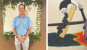 Immediately below: This is Dr. Ledlow’s first graduation as principle. Pictured below, he wears a student graduation cap in support of all seniors.