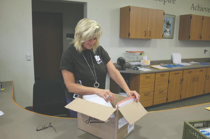 Above: The offfice plays a key part in the preparation to make graduation special for seniors. Pictured here is PN secretary Sue Brotebeck stuffing diploma envelopes, “My favorite thing to do in the office in regards to graduation, is receiving the diplomas!”