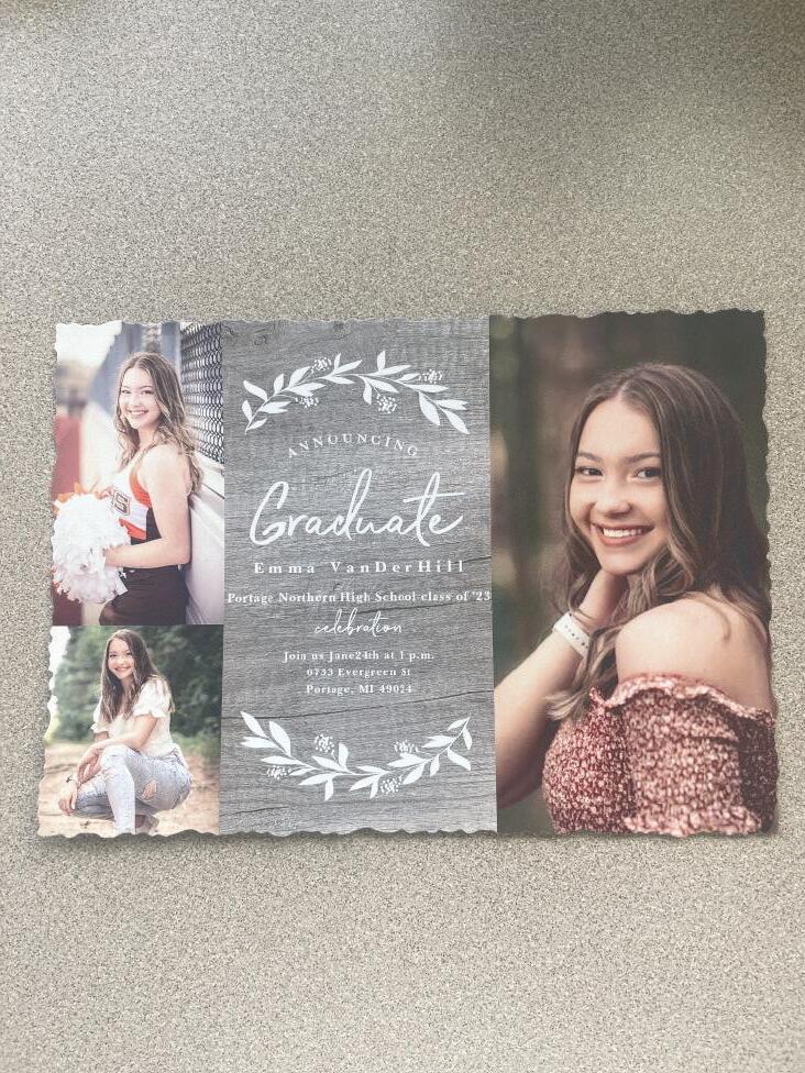 tion and are as unique as the senior who hands them out. Emma Vanderhill’s invit is picturd below. “For my graduation party, I am most excited to celebrate with my friends and family!” she said.